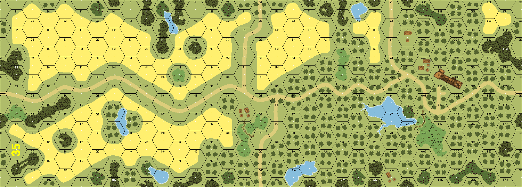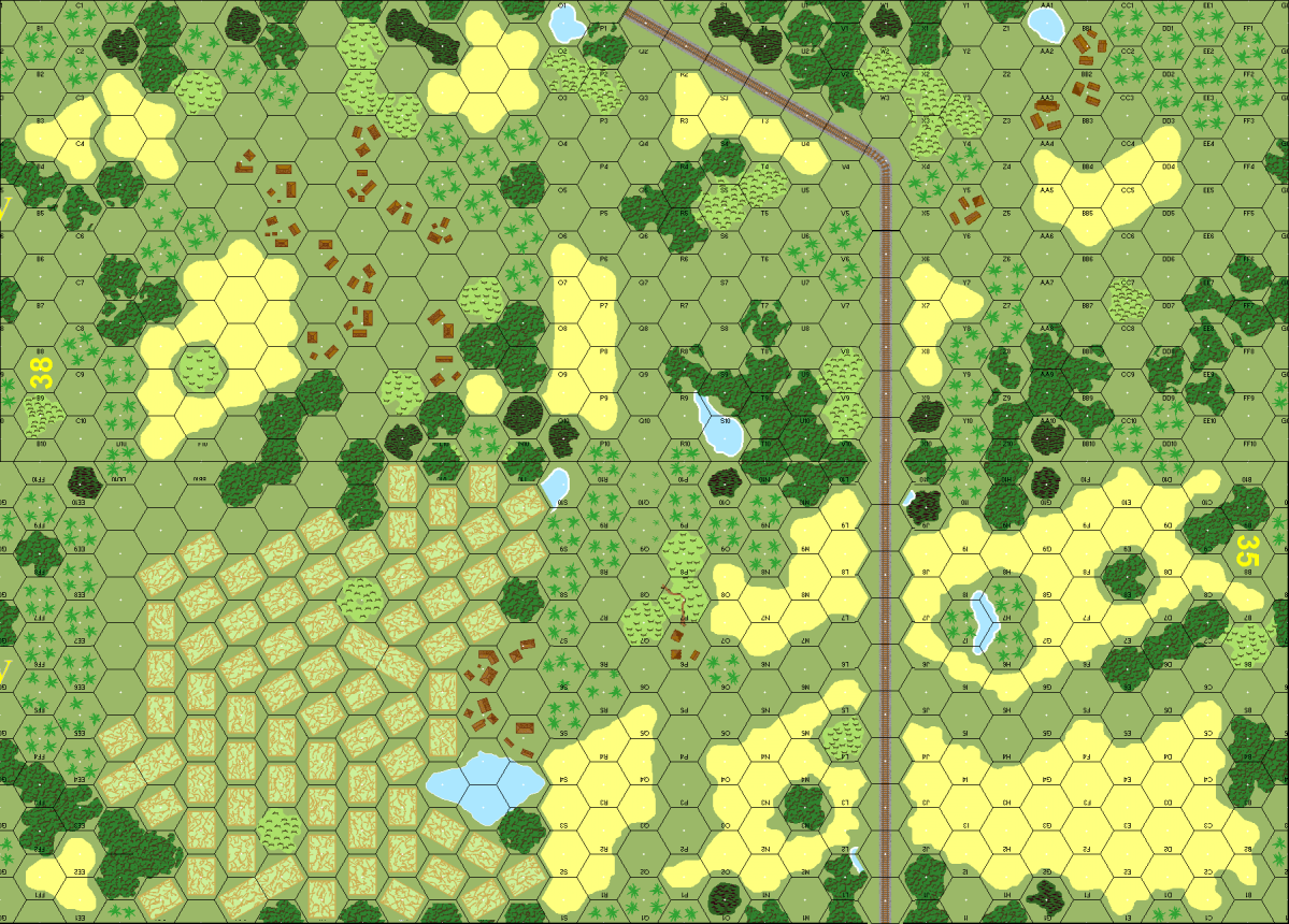 Misc Rules: | RR are EmRR (B32.1). Rice Paddies are Irrigated (G8.12). Boresighting is NA. |