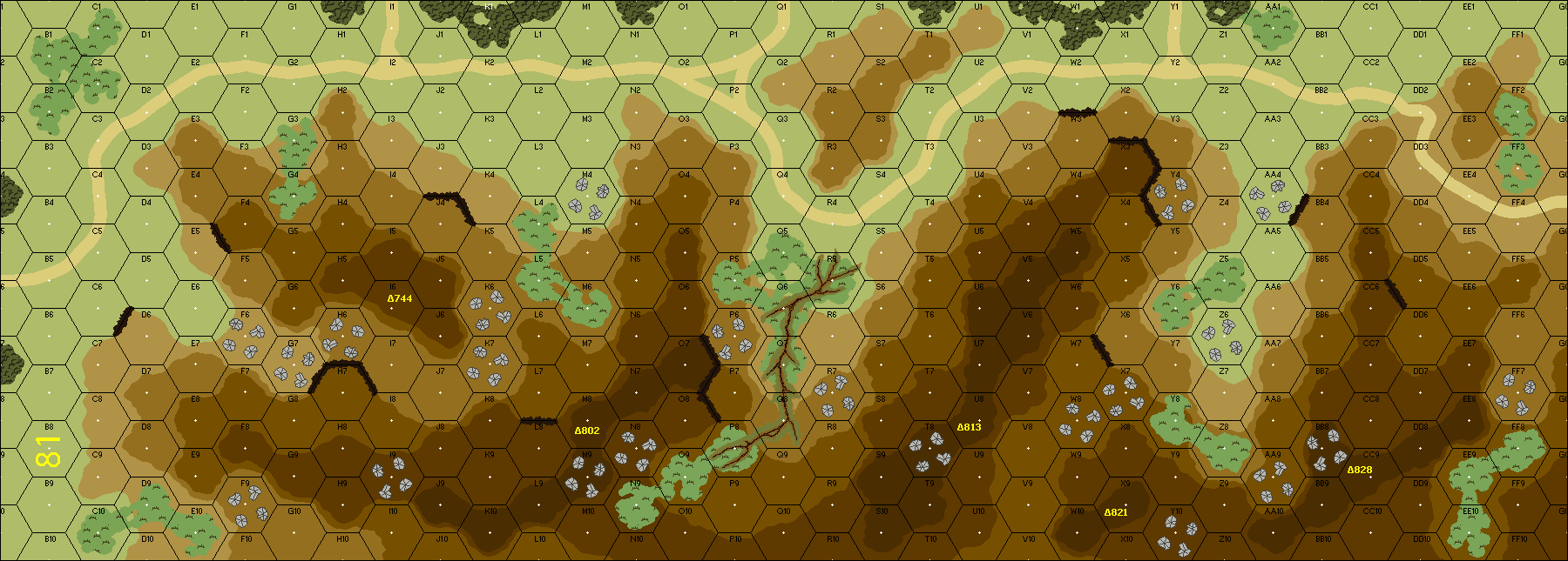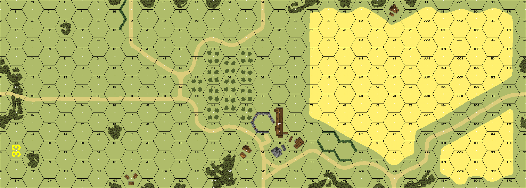 Misc Rules: | Night rules. KW Terrain (Exc: Woods / Orchards are Brush). Roads are Paths. No Grain. Shallow river |